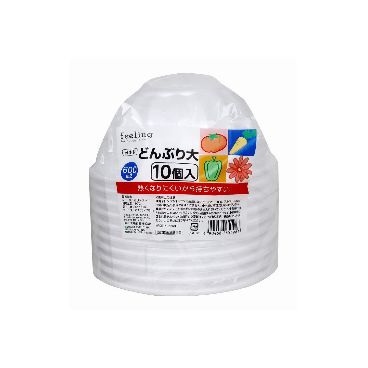 FL どんぶり大 10個入 商品サイズ(約) : 直径157×70mm 容量(約) : 600ml 素材 : ポリスチレン(耐熱温度80度) 生産国 : 日本