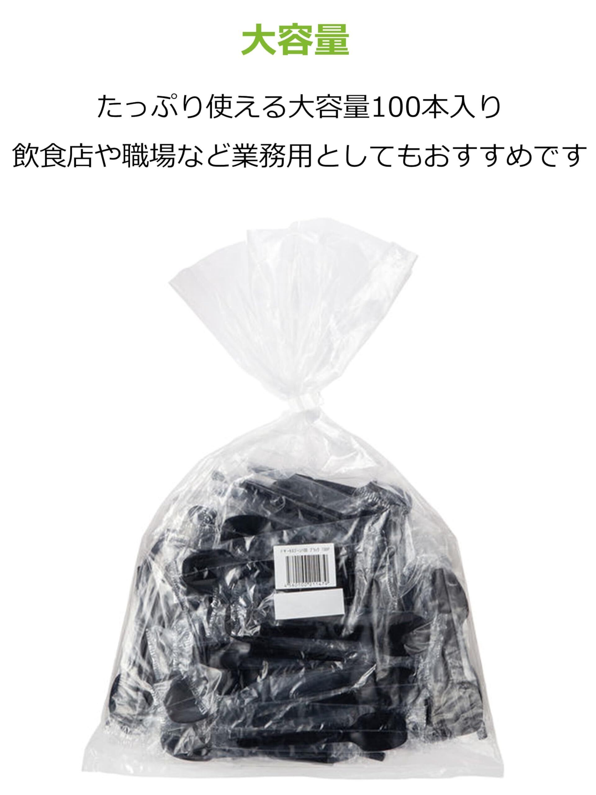 ストリックスデザイン 使い捨て ミニスプーン 日本製 業務用 100本 10cm ブラック 個包装 試食 デザート TS-420A