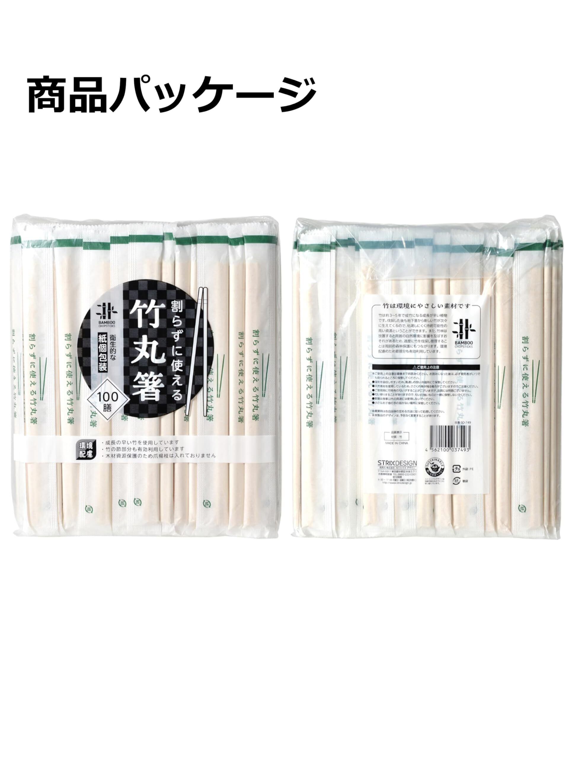 【人気商品】ストリックスデザイン 割り箸 竹丸箸 100膳 20cm 竹 紙完封 使い捨て 業務用 SD-749 【限定】
