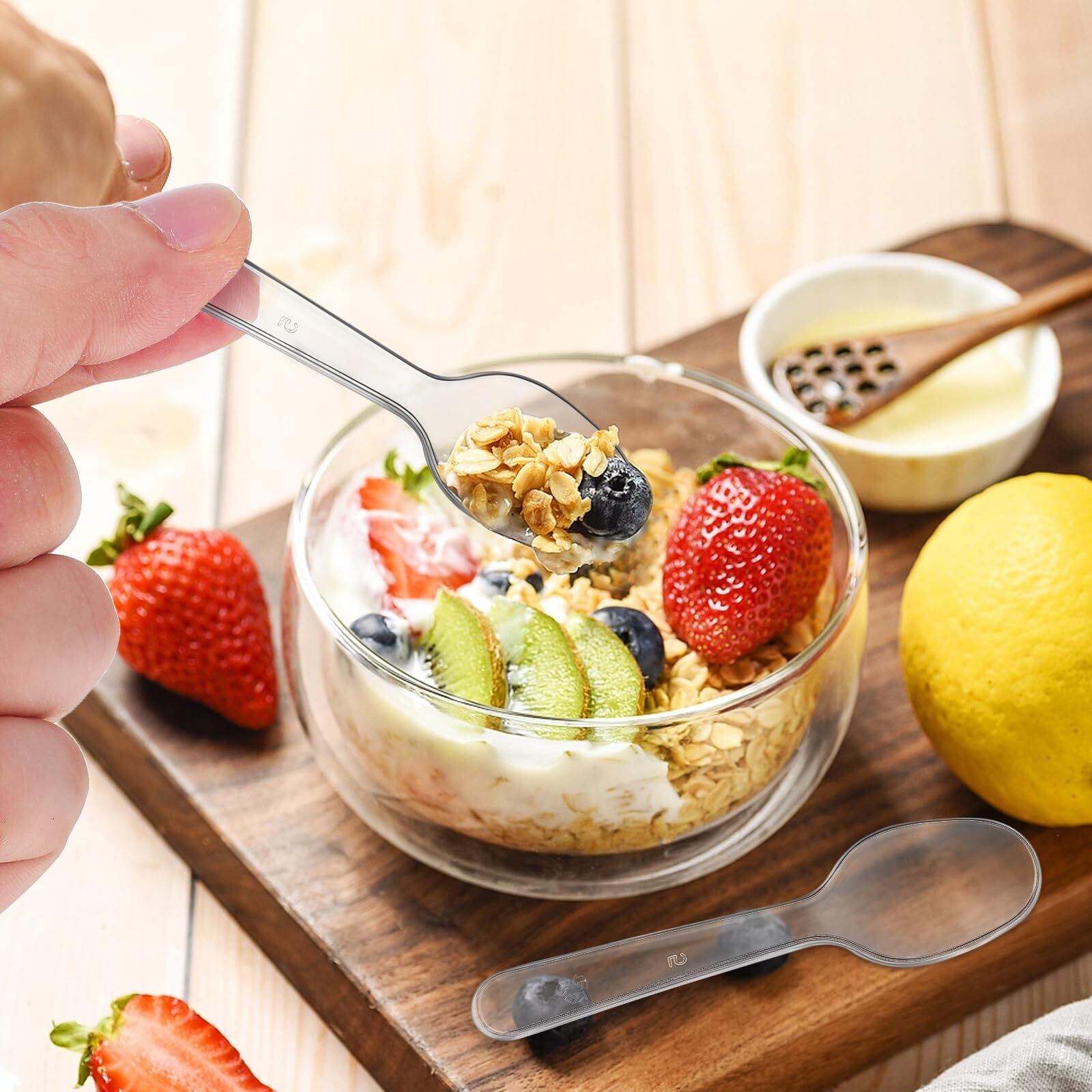 TOYMYTOY 使い捨て 透明 ミニスプーン 100本 8.5cm 業務用 宴会用 家庭用 ミニチック スプーン デザートスプーン