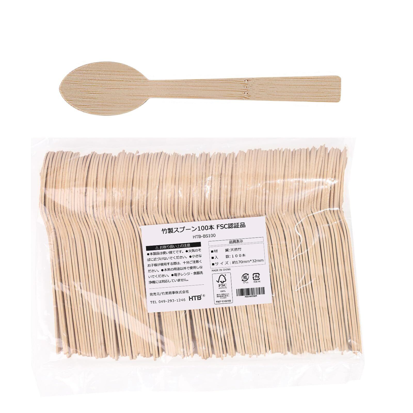 HTB 使い捨て スプーン 100本 17cm 天然竹 無漂白 業務用 アウトドア カフェ イベント (HTB-BS100)