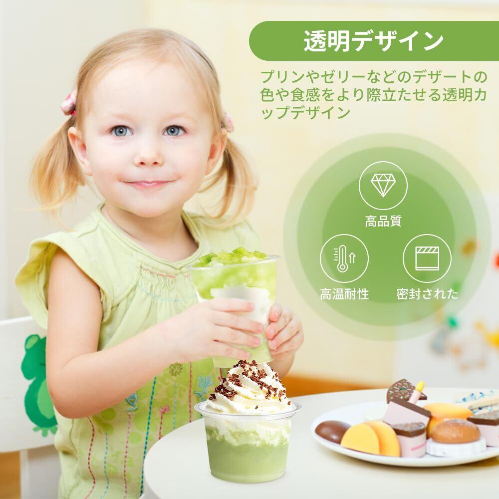 【透明デザイン】:透明なカップのデザインで、プリンやゼリーなどのデザートの色合いや質感が美しく映え、食卓をより華やかに彩ります。