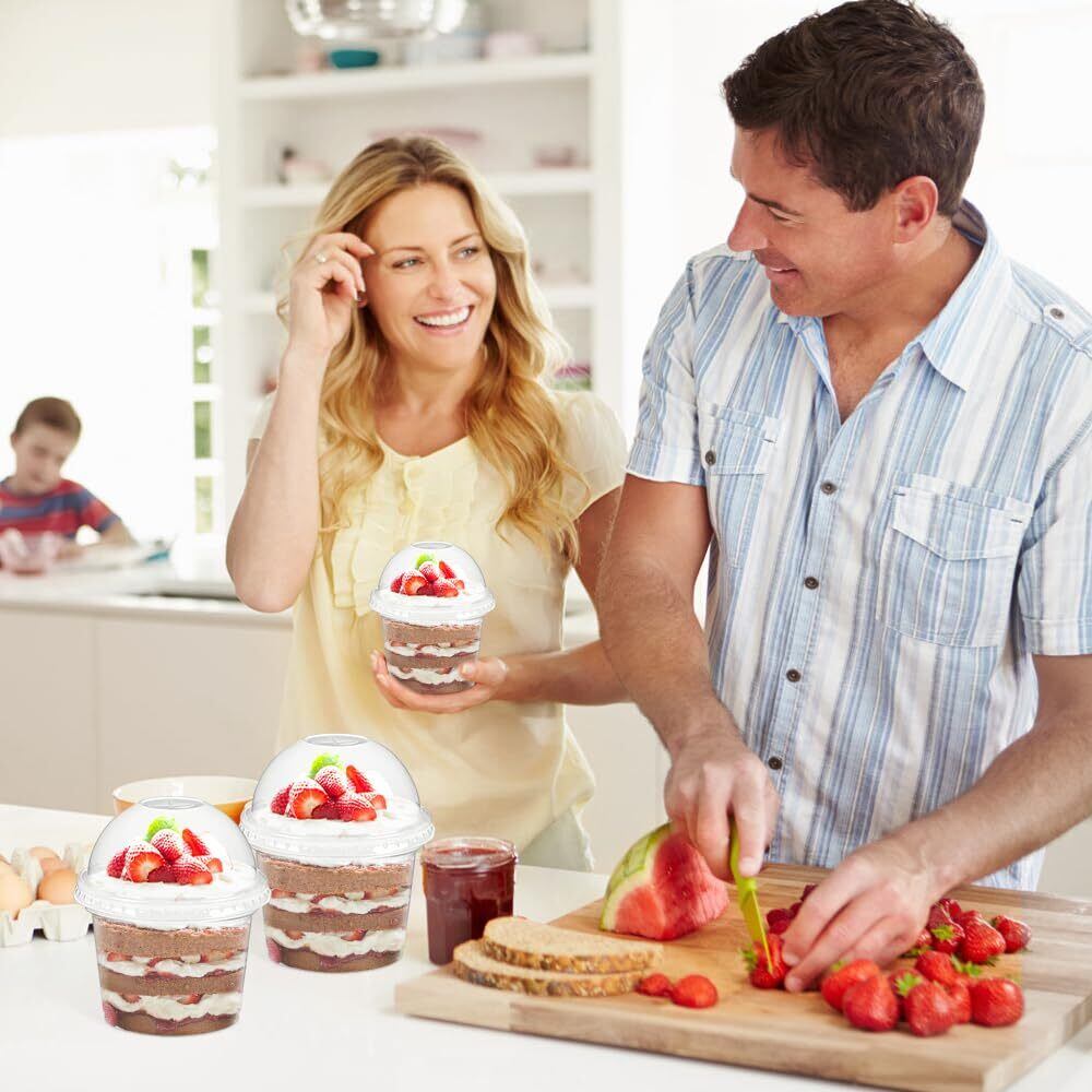 【特価商品】50pcsプリン 使い捨て透明プラスチックカップデザートカップ上蓋付きアイスクリームカップ/ケーキデザート/ヨーグルト/ゼリー包装 (50個セット, 250mlデザートカップ【丸蓋付き】)
