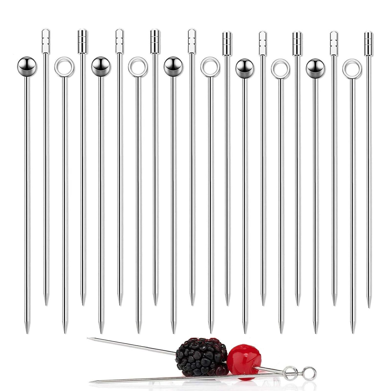 20Pcsステンレスカクテルクジ4.3インチフルーツバーメタルカクテルパーティ爪楊枝フルーツ、オードブル、クラブサンド、バーやパーティに適しています(シルバー)