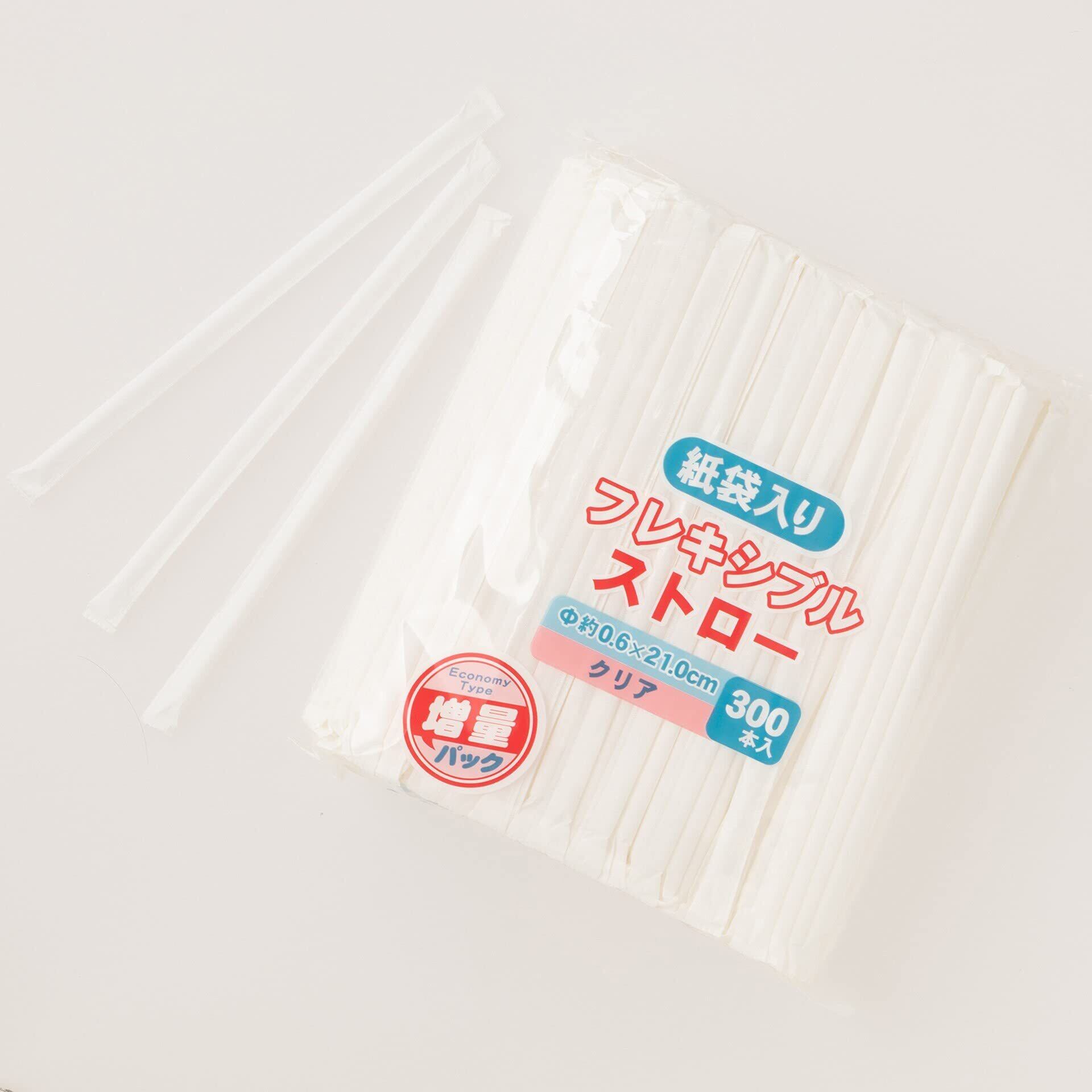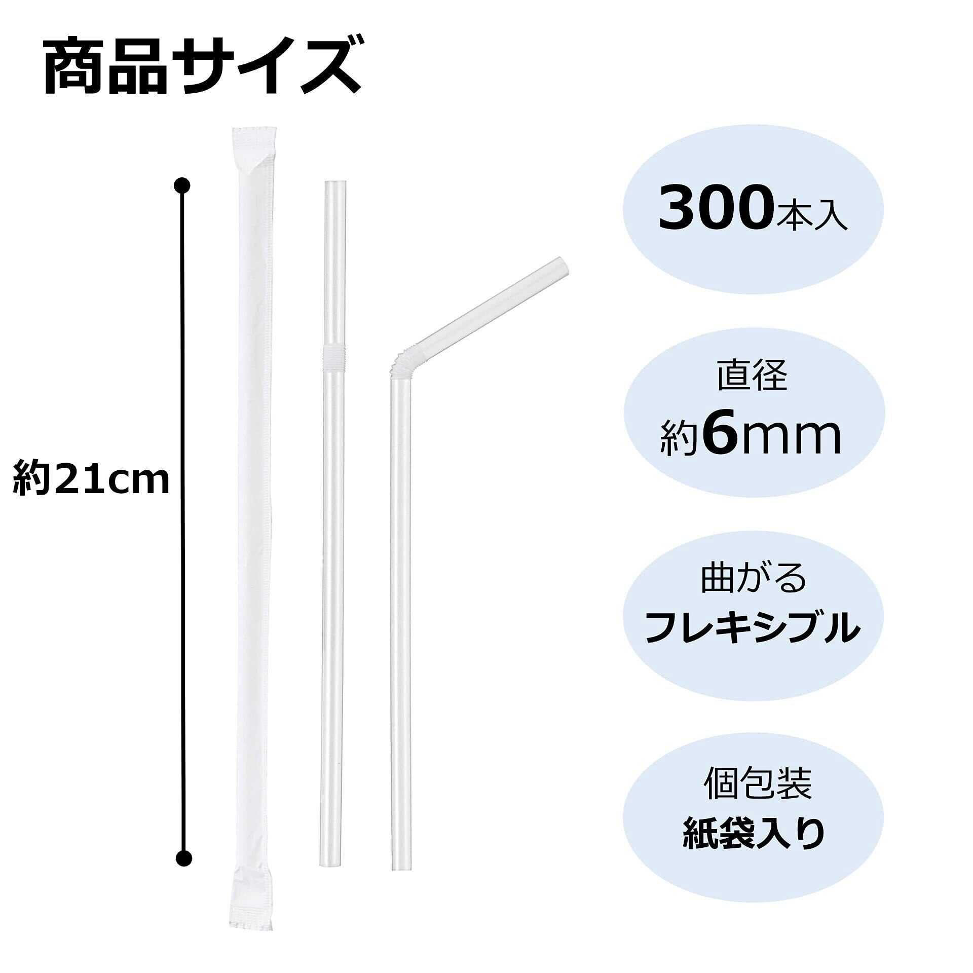 ストリックスデザイン ストロー 紙袋入り フレキシブルストロー 600本 (300本×2個セット) クリア 21cm 直径6mm 個包装 業務用 曲がる MA-817 【 限定】