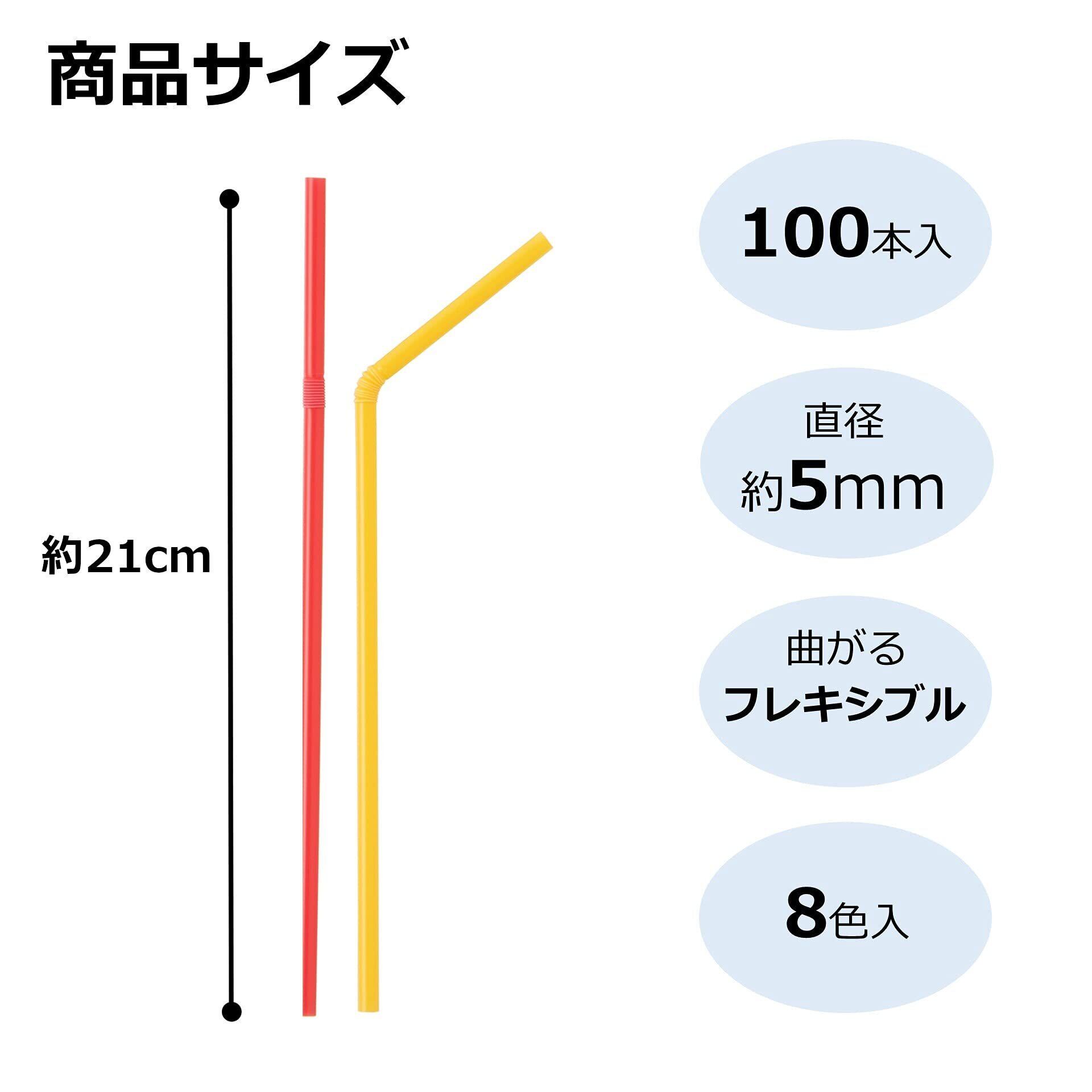 ●8色のカラフルなストロー。100本入りでお得。