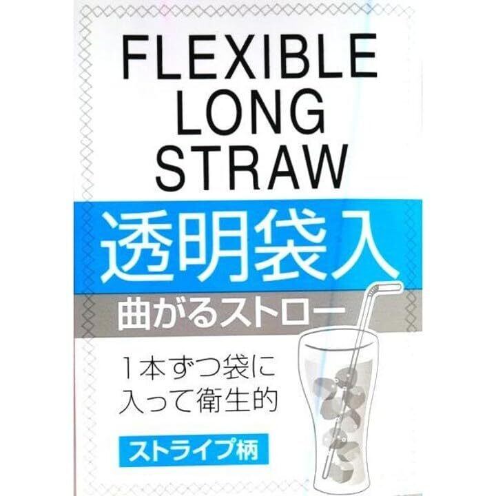 【人気商品】曲がるストロー ストライプ柄 ロング 50本入 6×250mm 個包装 透明袋入り 500mlペットボトル対応 食品衛生法適合品 ストロー