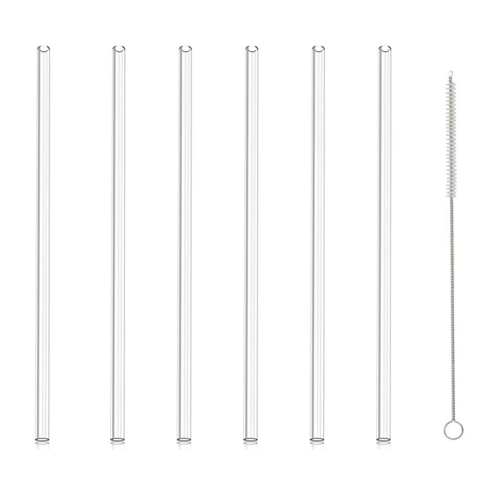 【特価商品】交換用ストロー クリアプラスチック PE製 安全無毒 再利用可能 クリーニングブラシ付き コップアクセサリー 6本パック