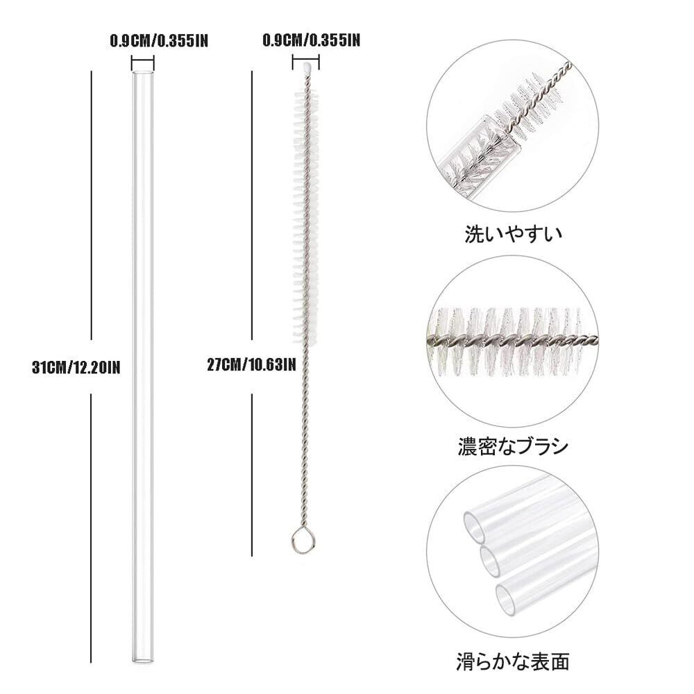 交換用ストロー クリアプラスチック PE製 安全無毒 再利用可能 クリーニングブラシ付き コップアクセサリー 6本パック
