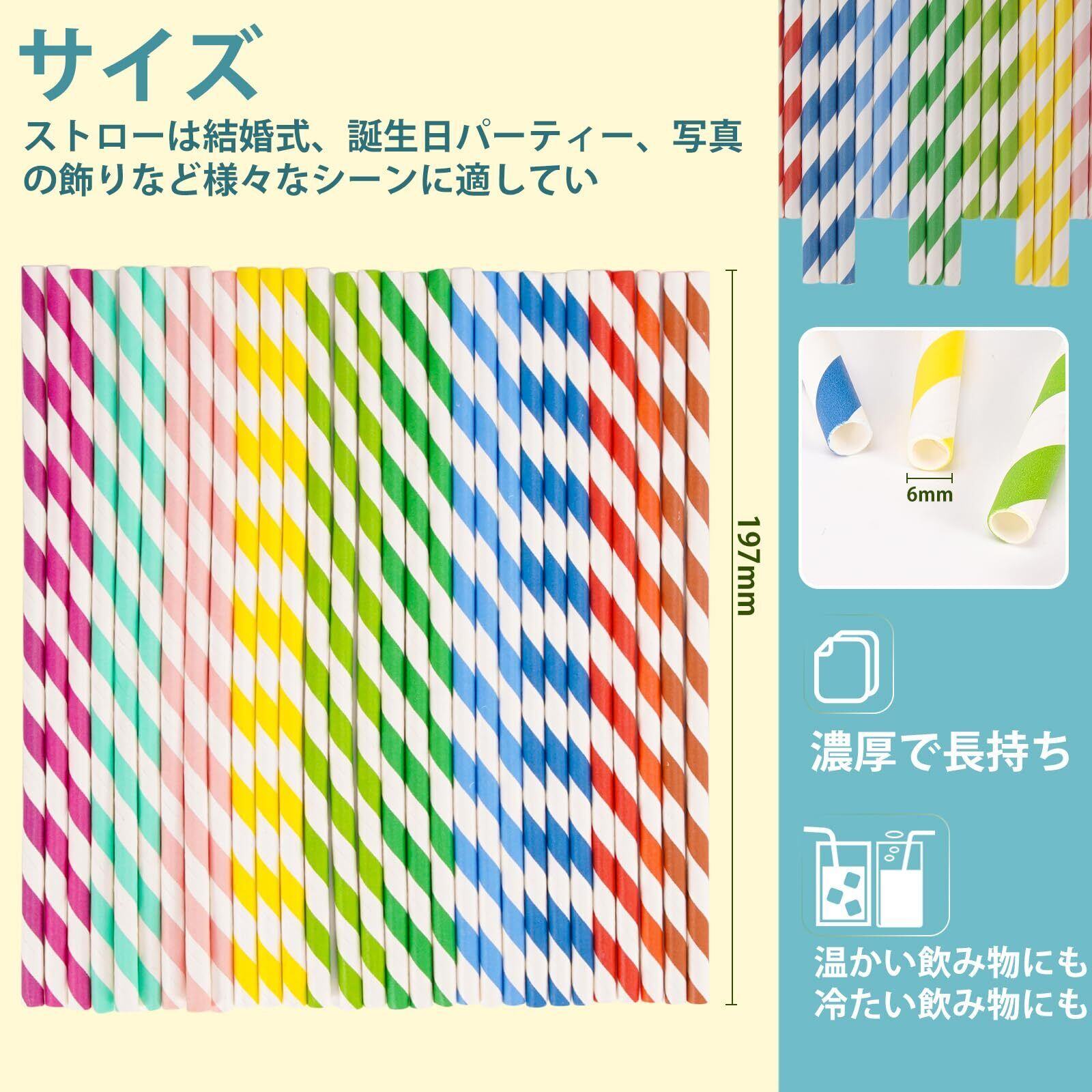 【数量限定】ペーパーストロー 100本入 ストライプ 紙ストロー 使い捨て 可愛い カラフル紙製 ロングストロー 衛生的 長持ち ジュース カクテル スムージー パーティー 誕生日 クリスマス パーティーグッズ 家庭用 業務用 パピエストロー