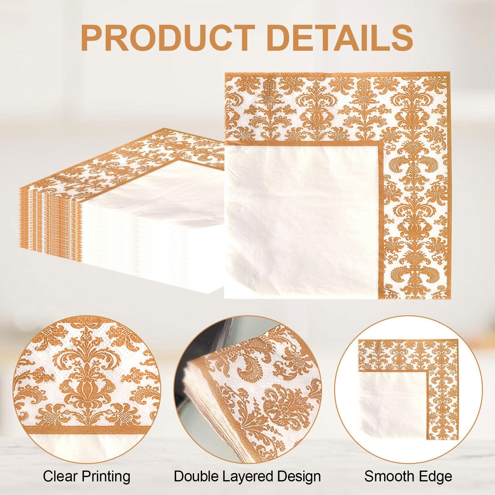 【2022最新】ゴールドプリントナプキン、80枚 使い捨てナプキン 紙 ゴールドホイル ナプキンパーティー、結婚式、記念日、お祝い用のナプキン、33x33cm