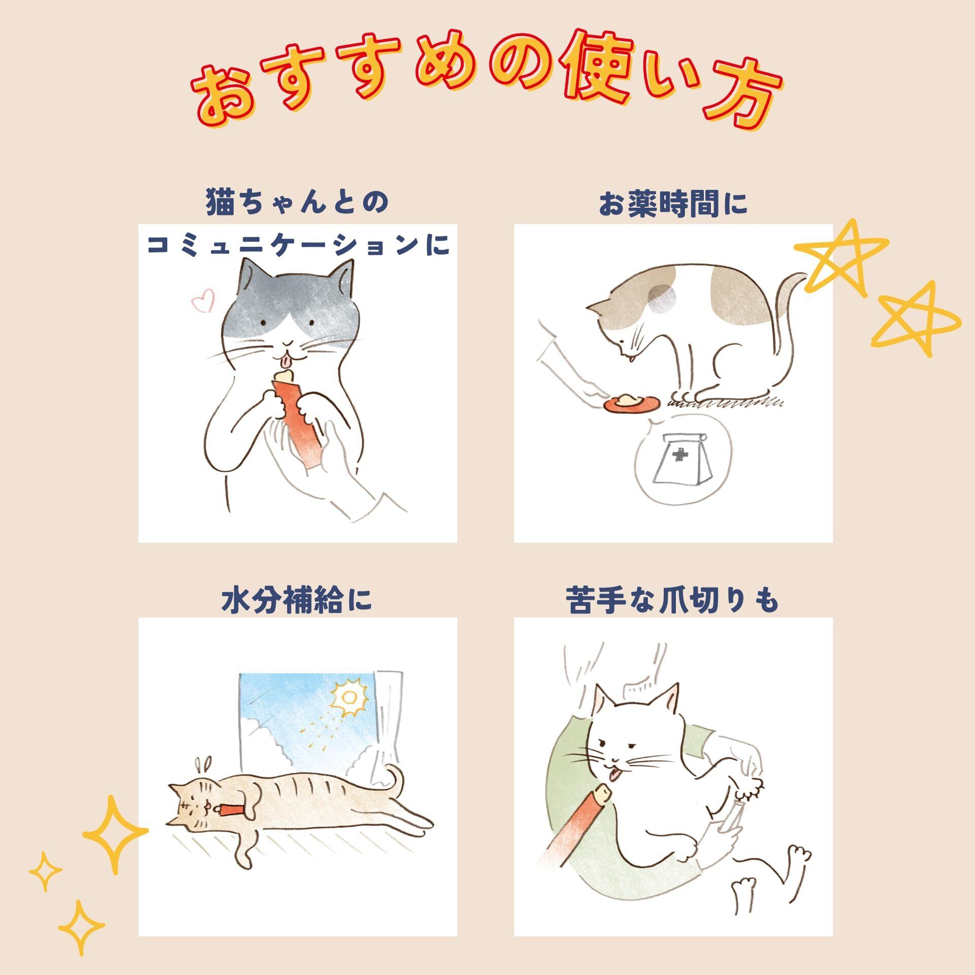 食べきりサイズの液状おやつ。人気のフレーバーを組み合わせたバラエティパック。一度与えたらやみつきになるおいしさです。
