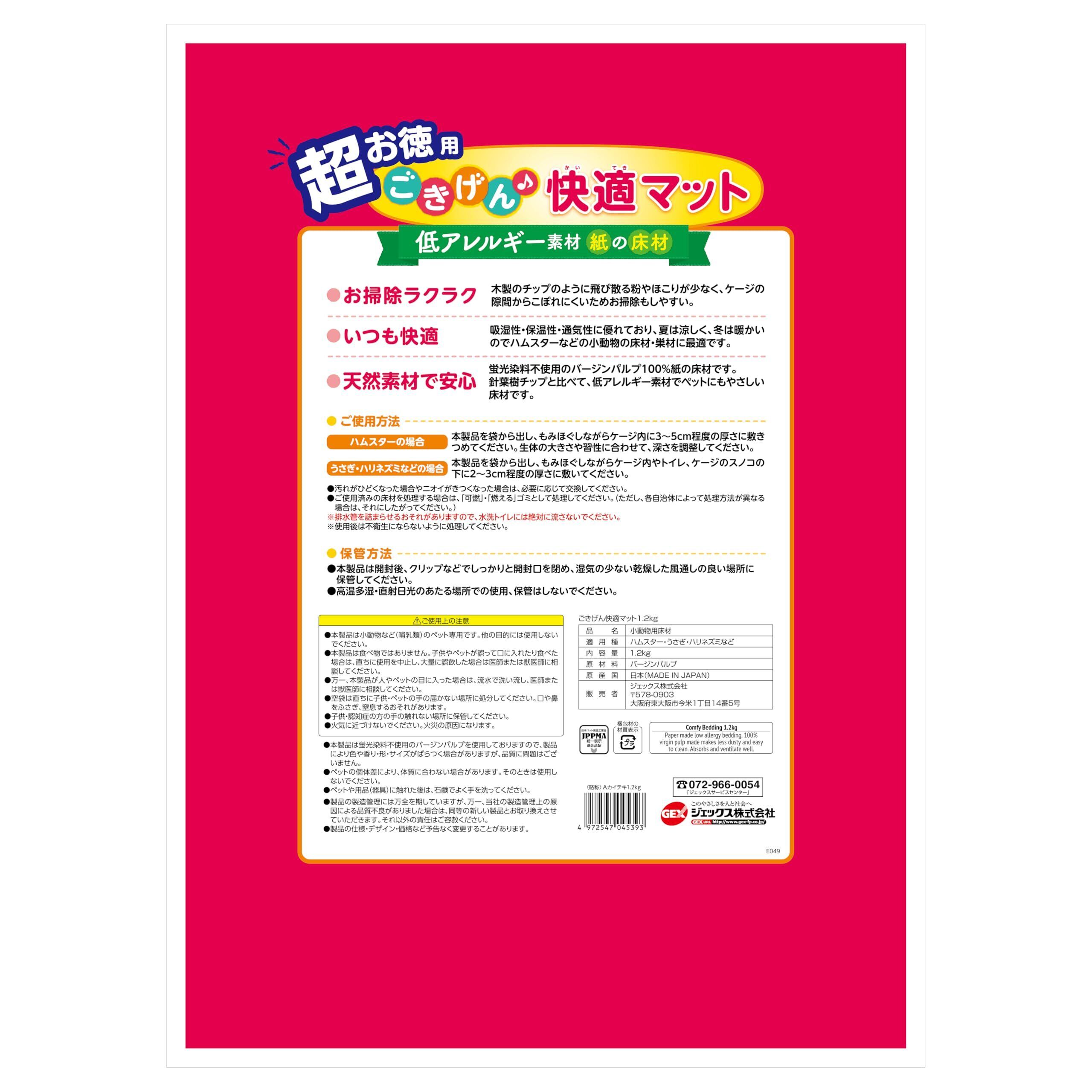 ジェックス ごきげん快適マット 低アレルギー素材 紙の床材 ハムスター・小動物用 超お徳用 1.2kg