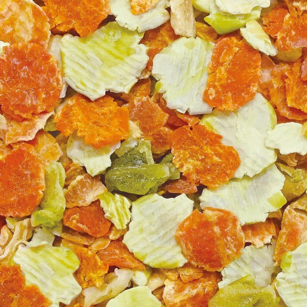 【原材料】 エンドウ豆、ニンジン、キャベツ、ブドウ糖 【保証成分】 粗たん白質12.6%以上、粗脂肪1.6%以上、粗繊維5.1%以下、粗灰分3.2%以下、水分10.4%以下 【エネルギー】 約333kcal/100g