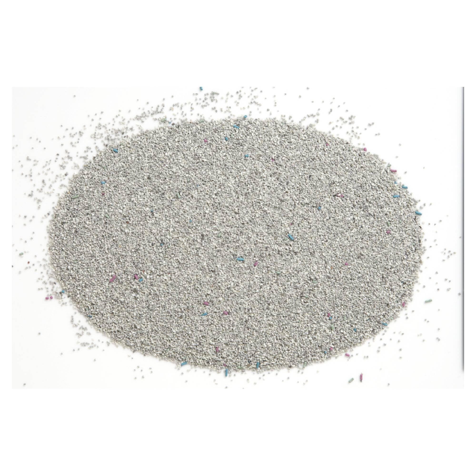 高温加熱殺菌処理をしたグレーの粒が、オシッコとニオイをすばやく吸収して固まります。3つの粒で抗菌&消臭。