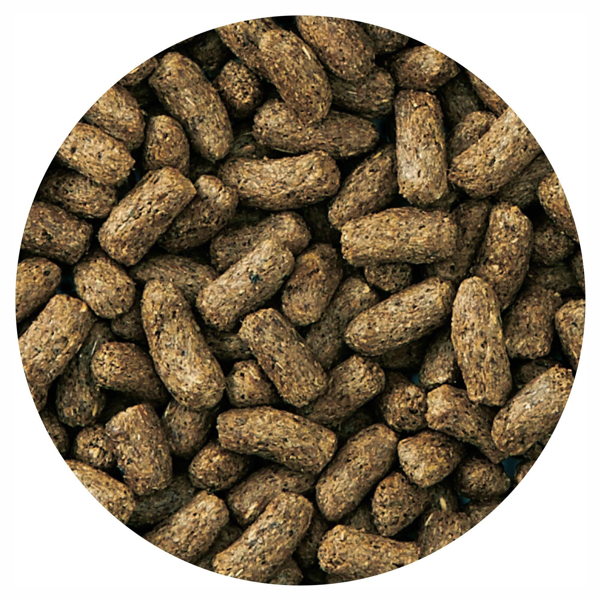 【原材料】チモシー、とうもろこし、ふすま、グルテンフィード、アルファルファ、ビートパルプ、食物繊維(リグノセルロース)、小麦粉、脱脂大豆、りんご粕、動物性油脂、ひまわり油、発芽玄米、野菜類(大麦若葉、ケール、ブロッコリー、かぼちゃ、チンゲン菜、パセリ、にんじん、セロリ、ゴーヤ、ほうれん草、桑の葉、モロヘイヤ、よもぎ、トマト)、植物抽出発酵エキス、はちみつ、乳酸菌、ミネラル類(Ca、Na、Cl)、ビタミン類(A、B1、B2、B6、B12、C、D3、E、K3、コリン、ナイアシン、パントテン酸、葉酸、ビオチン)、酸化防止剤(ミックストコフェロール、ハーブエキス) 【保証成分】たん白質12.0%以上、脂肪3.0%以上、繊維20.0%以下、灰分7.5%以下、水分10.0%以下、カルシウム0.4%以上、リン0.4%以上 【エネルギー】約263kcal/100gあたり