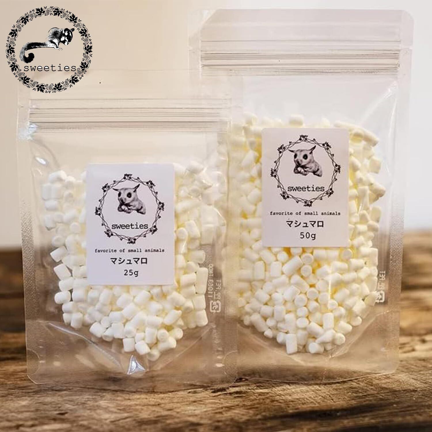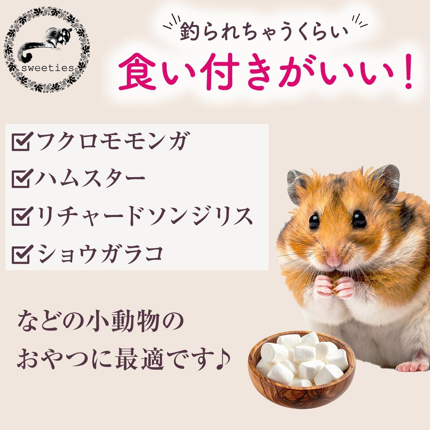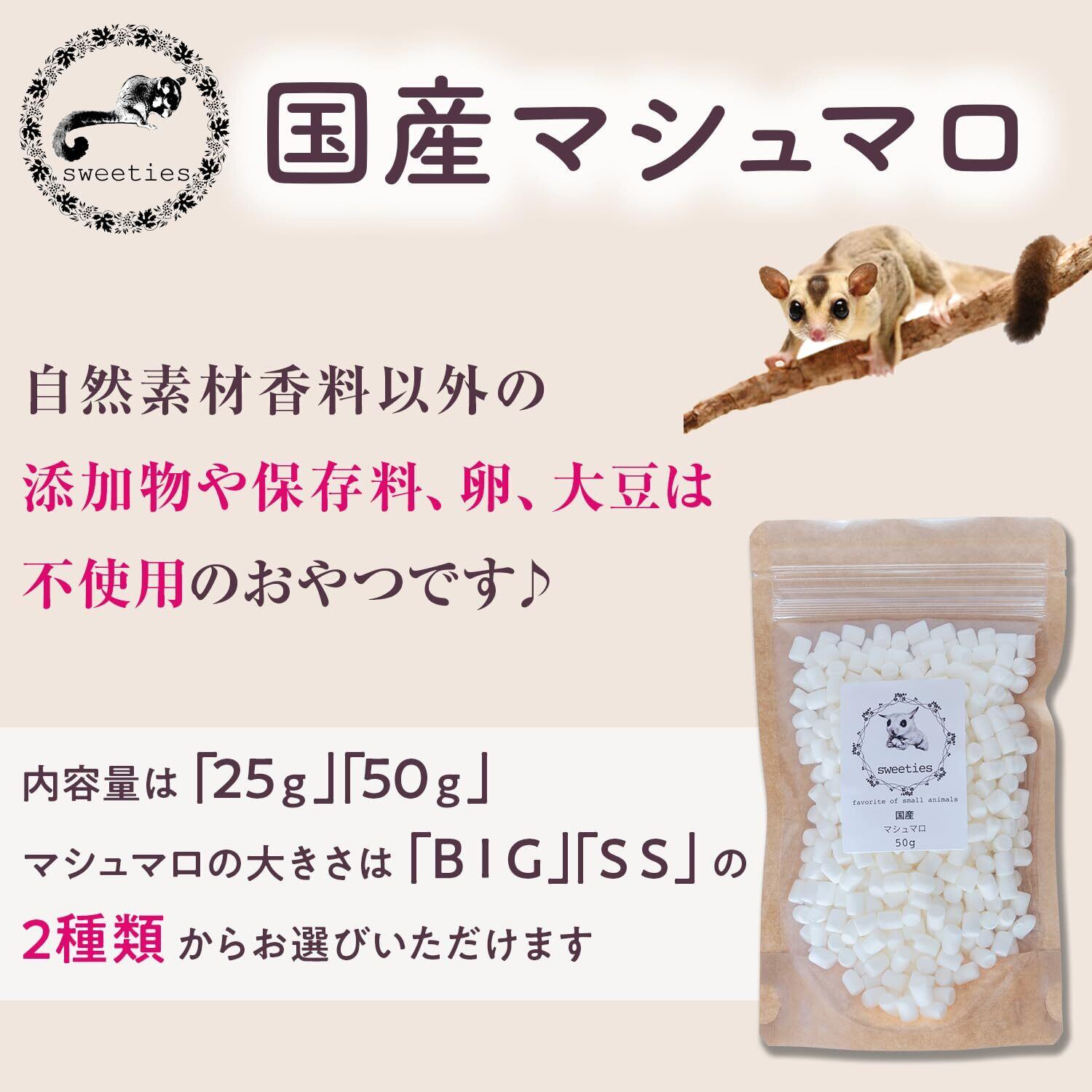 【国産】 小動物おやつ マシュマロ SSサイズ 食い付き 添加物&保存料不使用 フクロモモンガ ハムスター ハリネズミ 卵不使用 50g