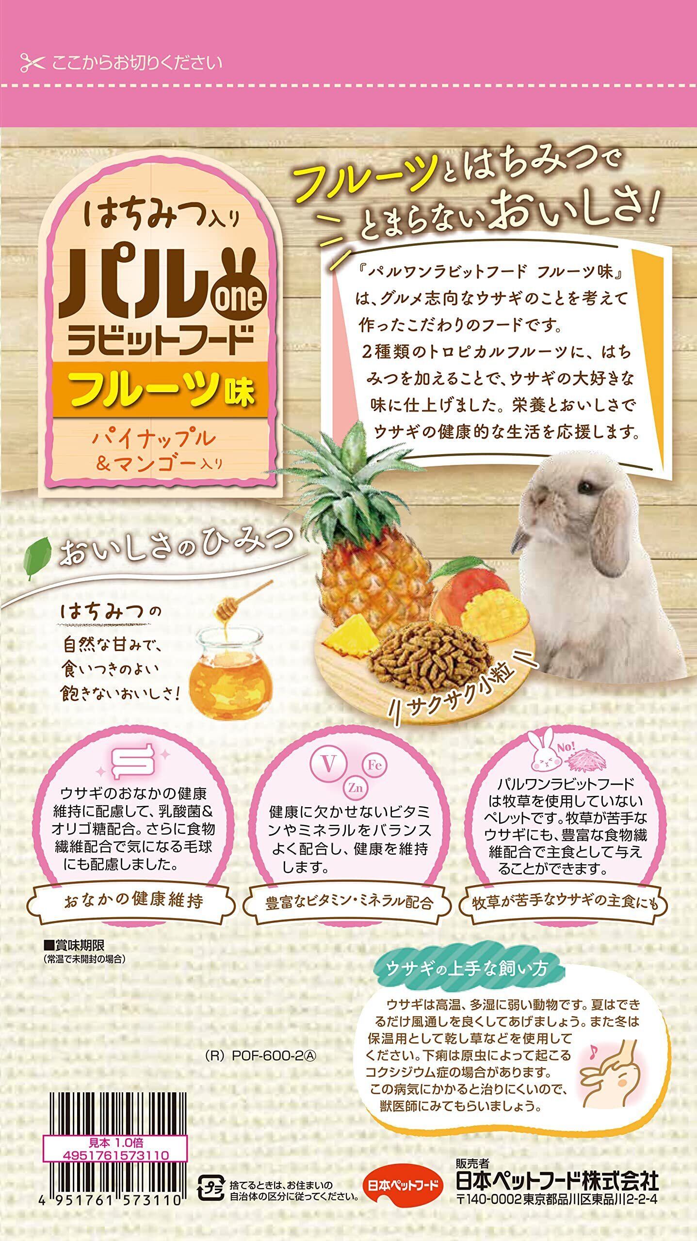 日本ペットフード パルワン ラビットフード フルーツ味 600g (×2個)(まとめ買い) 【国産】 【ペレットタイプ】
