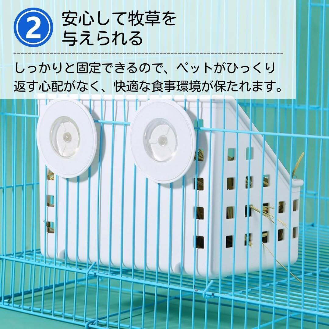ateena 牧草フィーダー チモシー入れ うさぎ 牧草入れ フィーダー モルモット 餌入れ ケージ 取付け 外付け ネジ不要 (ホワイト, Mサイズ)