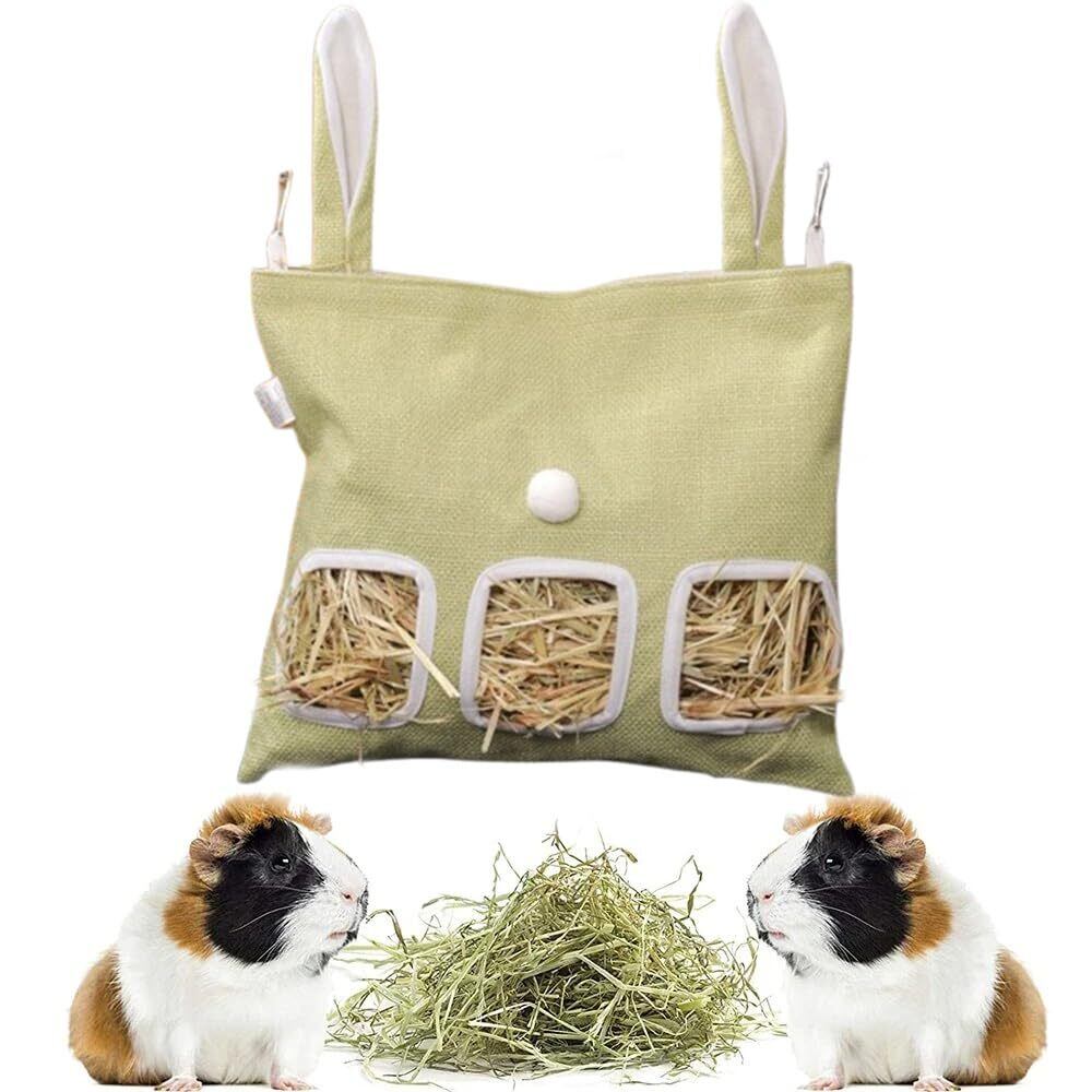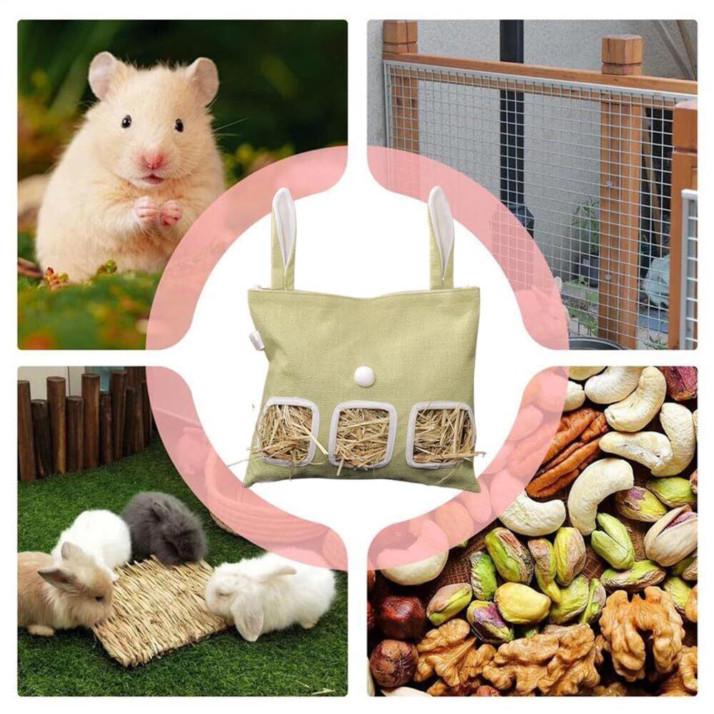 【新着商品】(大容量/静音設計)吊り下げ式 うさぎ チモシー入れ 牧草フィーダー こぼれない 散らからない 取り付け簡単 布製 省スペース 3つの取り出し口