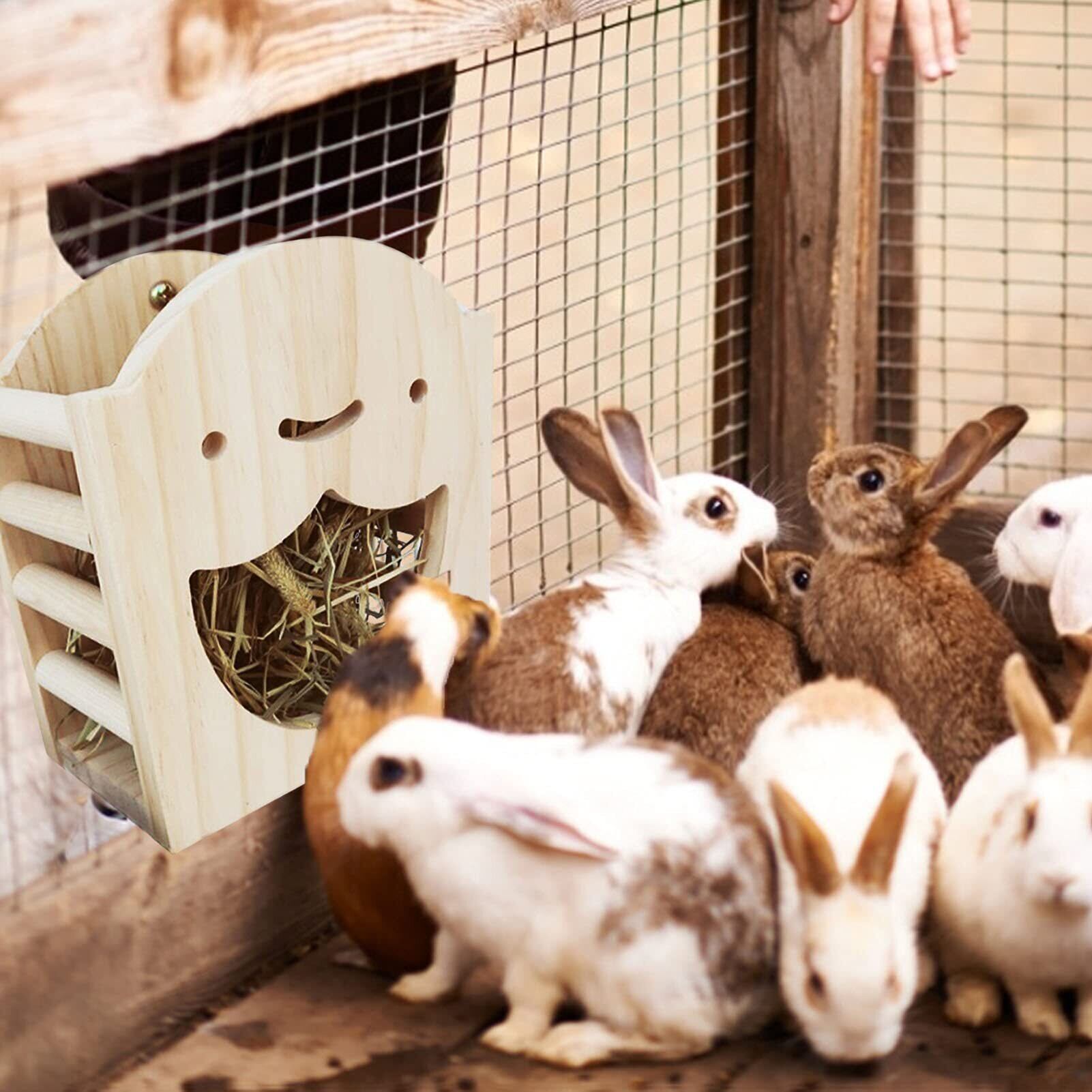 【新春セール】牧草フィーダー うさぎ 小動物 モルモット チンチラ フェレッド フード 食器 餌入れ 牧草用 牧草入れ 壁付け省スペース ネジ固定 かじり木牧草ボックス 干し草フィーダー ウサギ用食器 ケージに固定できる多機能 牧草用エコフィーダー 木製 (固定式)