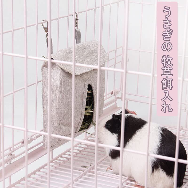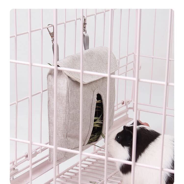 うさぎ 牧草入れフィーダー モルモット 小動物用 干し草の餌袋干し草 ゲージ用省スペース清潔 衛生的 オクスフォード素材 フィーダー 食器 吊るし餌袋 ハムスターモルモットグレー (M-17.5*16CM,グレー)