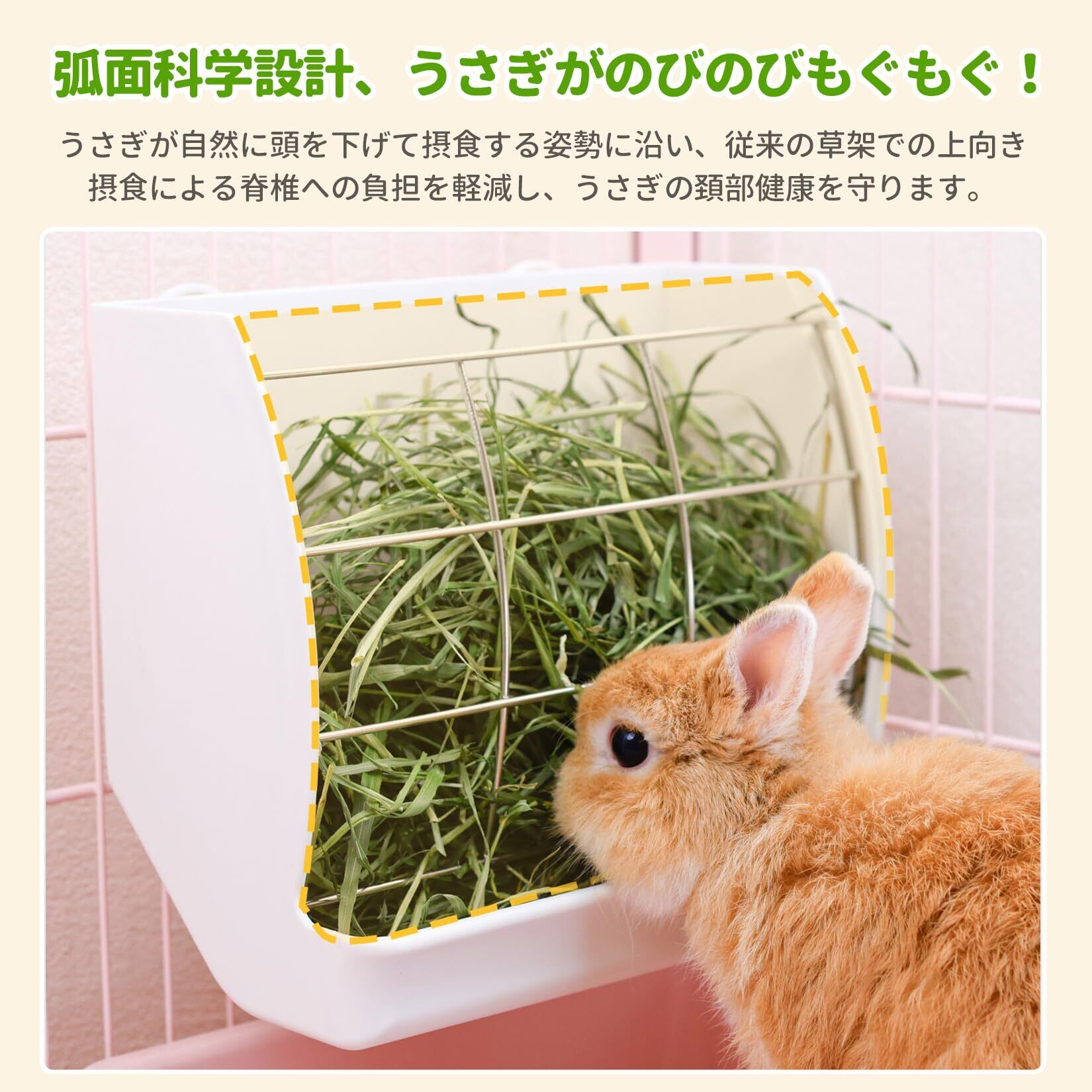 うさぎ用 大容量牧草フィーダー 弧面設計で頚椎保護 牧草浪費低減 食器付き 小さなグリッドの牧草入れ