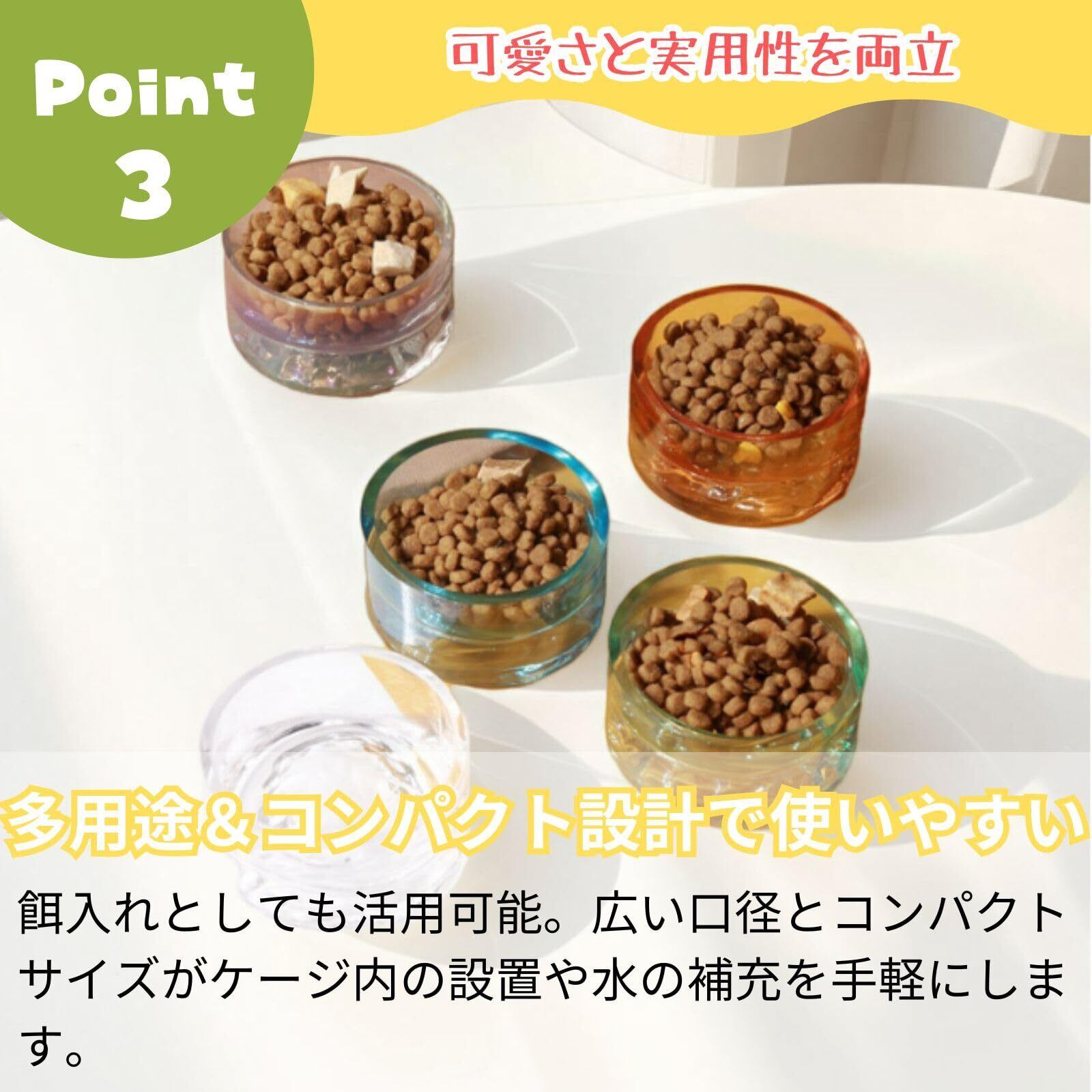 【多用途&コンパクト設計で使いやすい】餌入れとしても活用可能。広い口径とコンパクトサイズがケージ内の設置や水の補充を手軽にします。