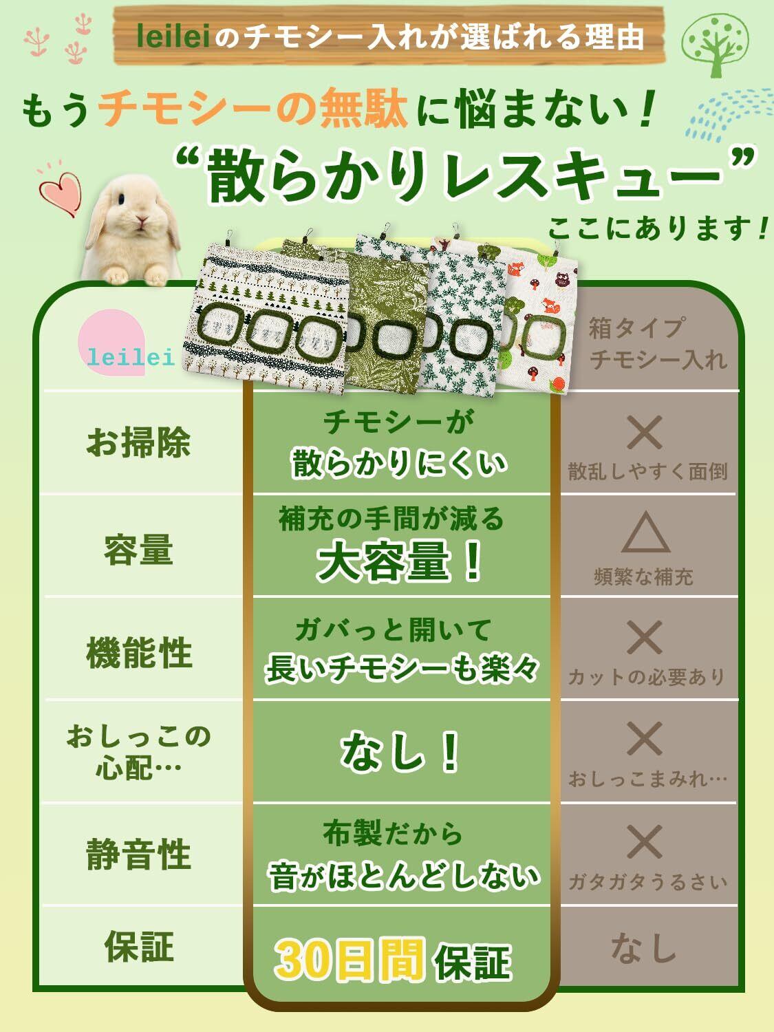 【チモシーが散らかりにくい】チモシーがこぼれ落ちにくく、床に散らかりにくい布タイプ。また、ケージにぶつかってもあまり音がしないので、うさぎさんの食事中でも音が気にならない!