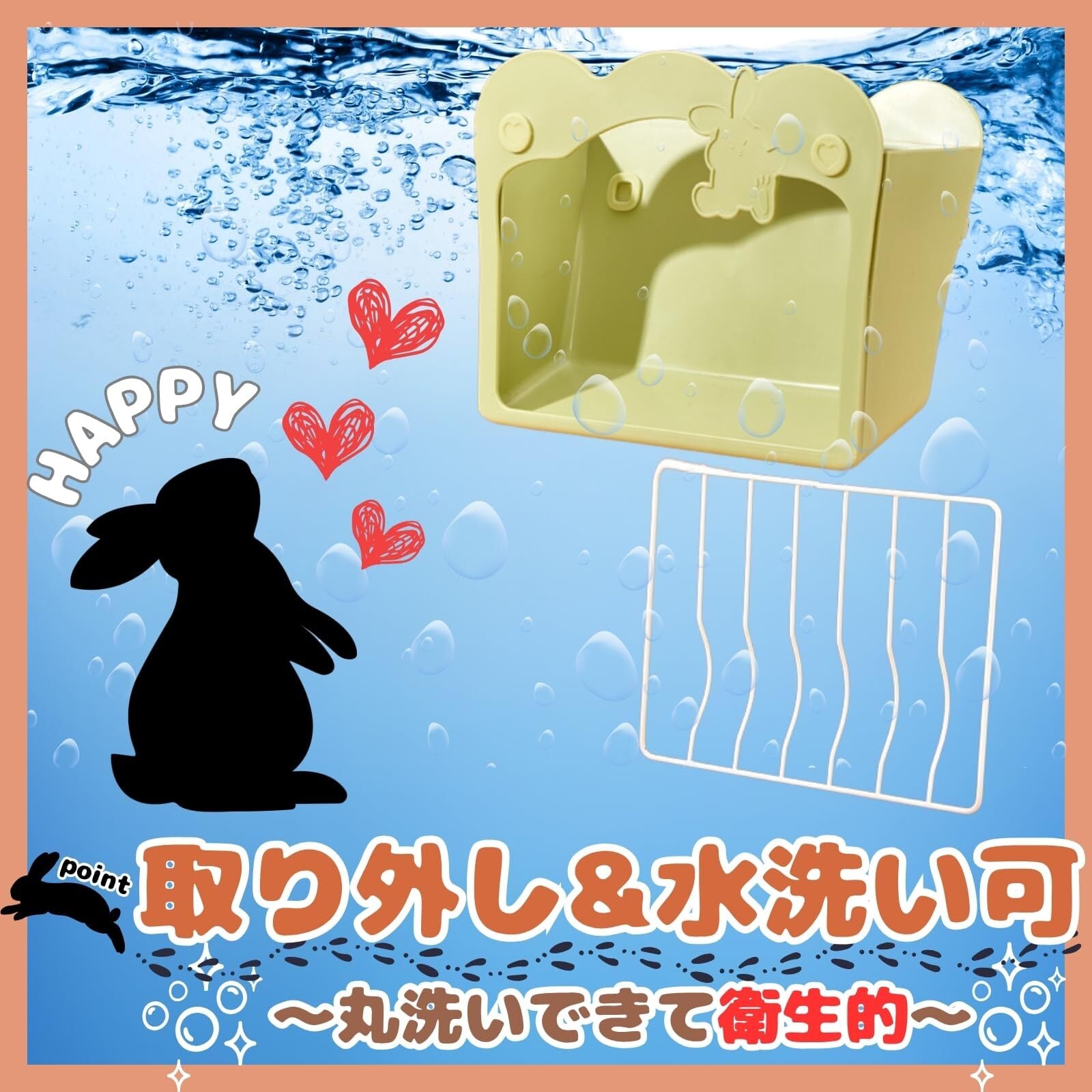 【こぼれにくく食べやすい設計】鼻の短いうさぎでも無理なく食べられるように配慮されたアーチ型の網デザインです。本体と網部分は取り外して丸洗い可能。木製に比べてお手入れがしやすく、清潔を保ちやすいプラスチック製です。