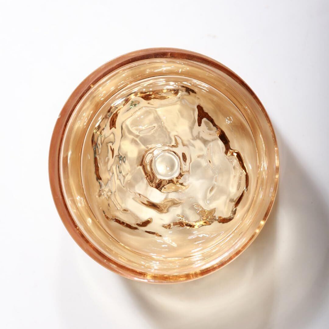 「商品仕様」素材:クリスタルガラス、サイズ:高さ3.5cm、直径6.6cm、容量:45ml、カラー:ブラウン