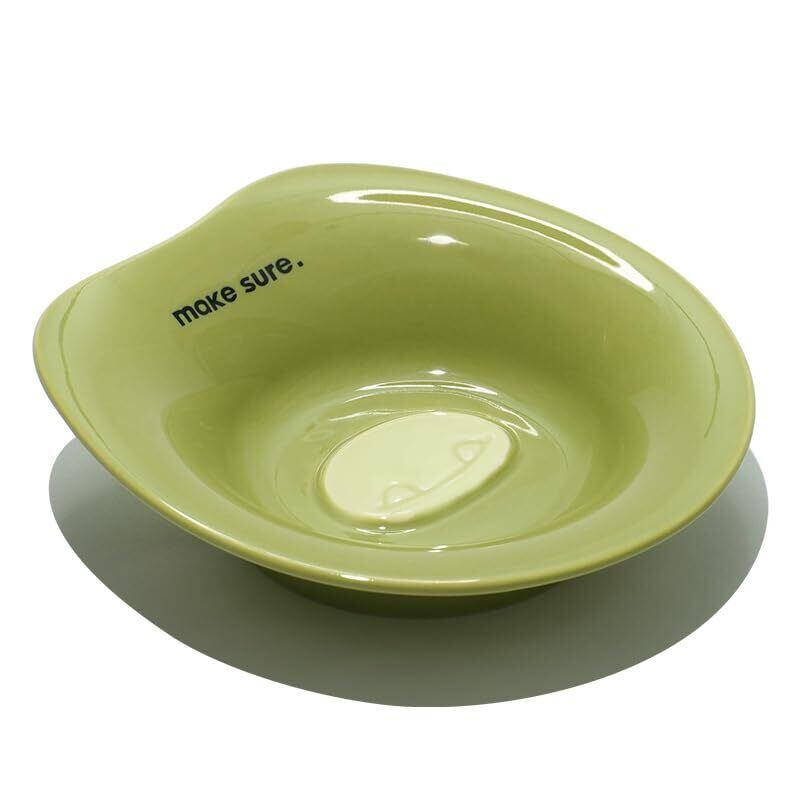 【数量限定】PetAImigo、セラミック食器ボウル、猫用食器、ペット食器、セラミック、フードボウル、斜めの口設計、3色(ブルー・ピンク・グリーン)、可愛い絵柄付き (グリーン)