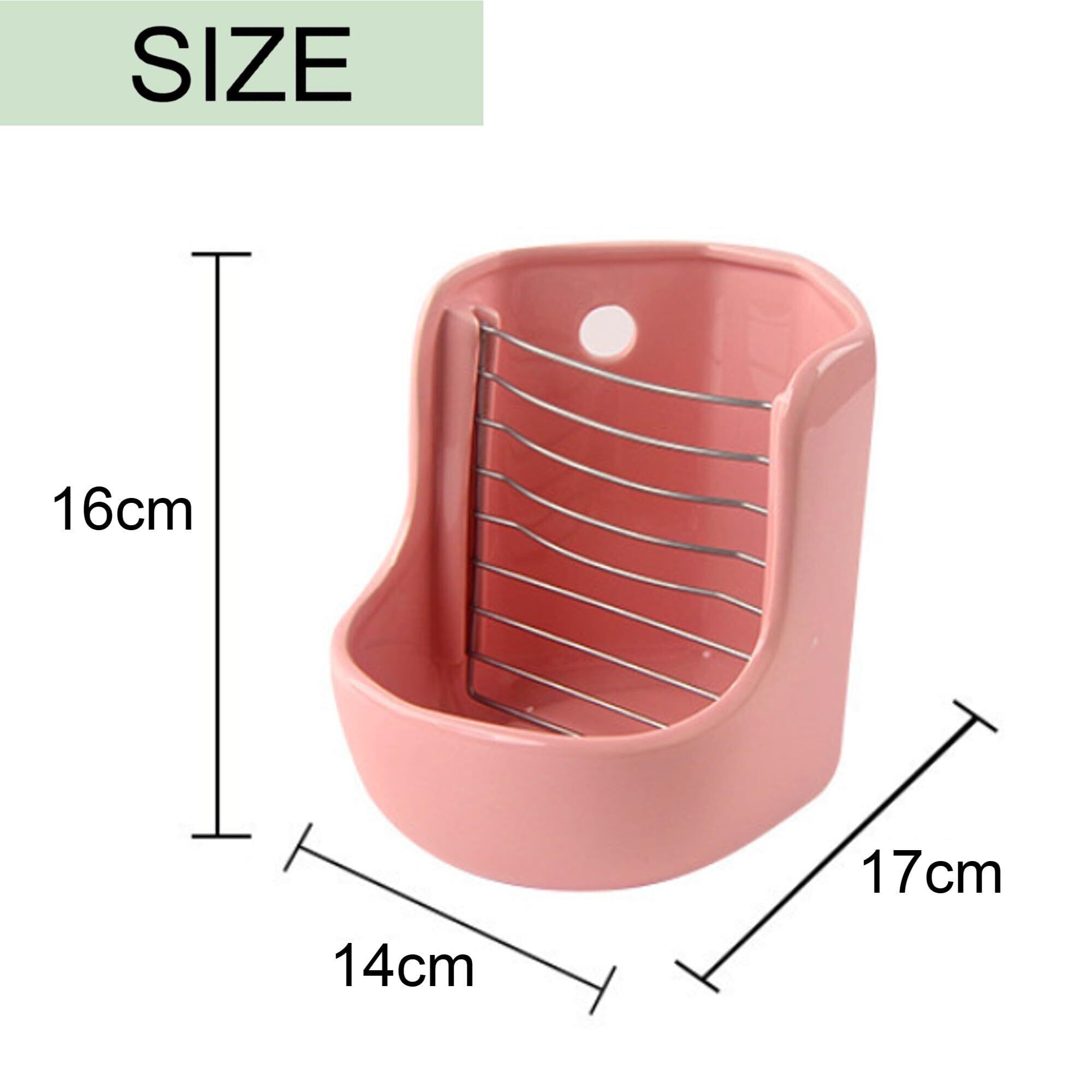 Asdays 牧草ポット 陶器 ウサギ チモシー 餌入れ 小動物 食器 餌箱 フィーダー こぼれにくい コーナー型 固定可能 (ピンク)