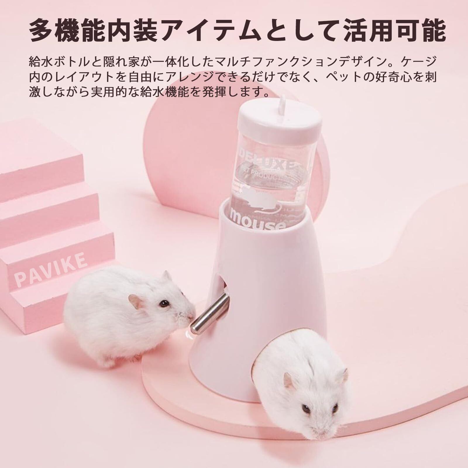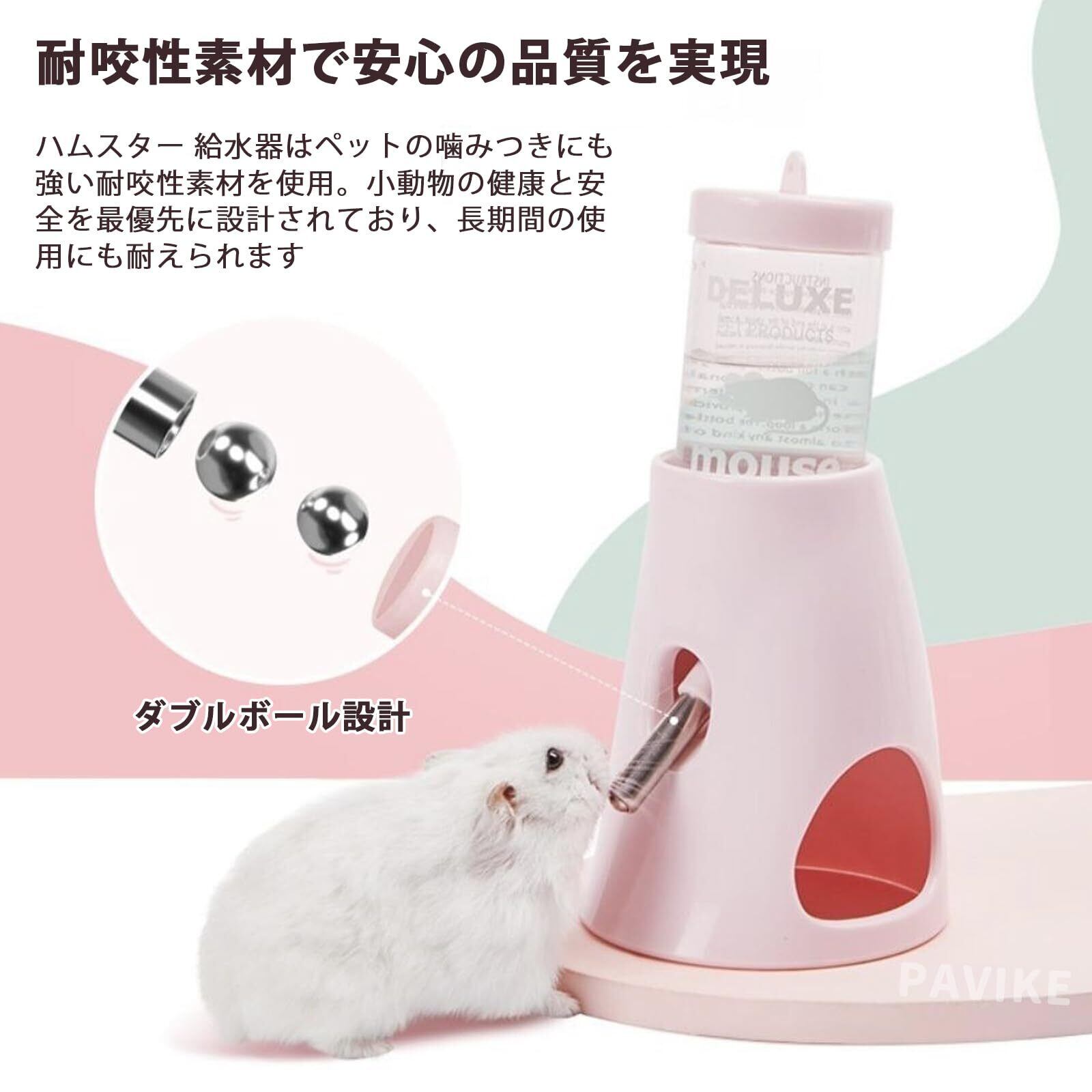 PAVIKE 小動物 給水器 ペットボトル ハムスター 給水器 うさぎ 水入れ 置き型 大容量 省スペースデザイン 電源不要 みずのみ器 自動給水器 熱中症を防ぐ 転倒防止 漏れ防止 ペット用品(80ml/ピンク)
