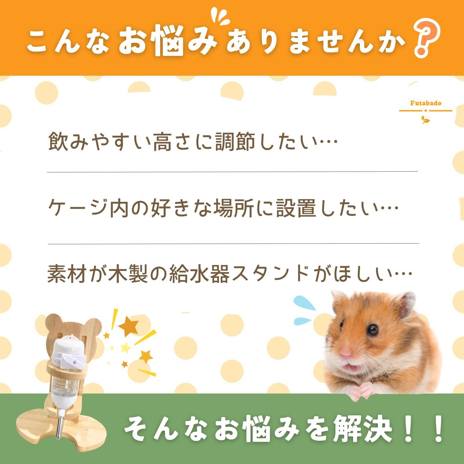 【数量限定】ハムスター 給水器 置き型 高さ調節できる 木製 水飲み 給水ボトル 水 ケージ かわいい 給水スタンド ハリネズミ シマリス (Bタイプ ホワイト, 80ml給水器)
