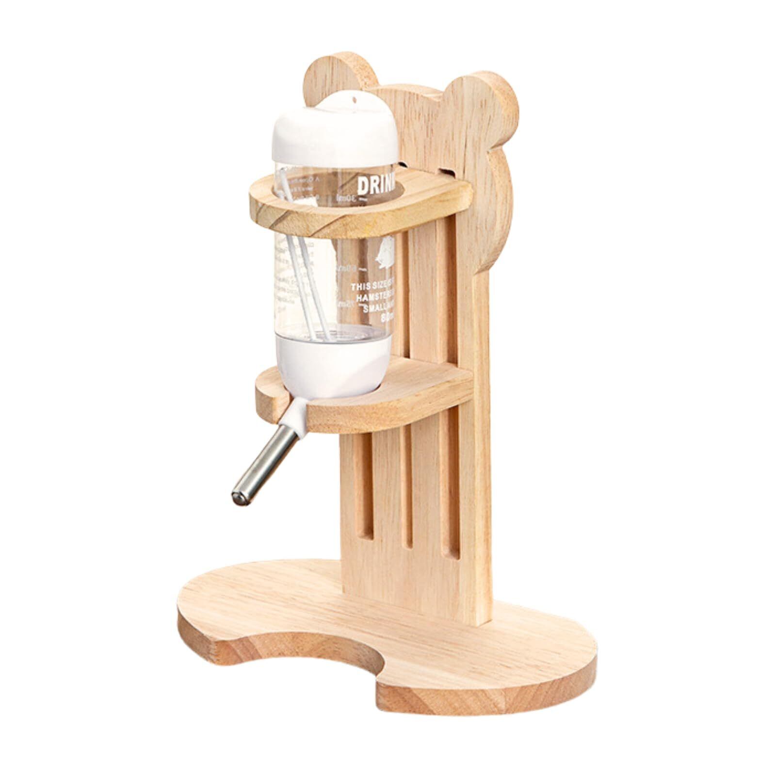 ハムスター 給水器 置き型 高さ調節できる 木製 水飲み 給水ボトル 水 ケージ かわいい 給水スタンド ハリネズミ シマリス (Bタイプ ホワイト, 80ml給水器)