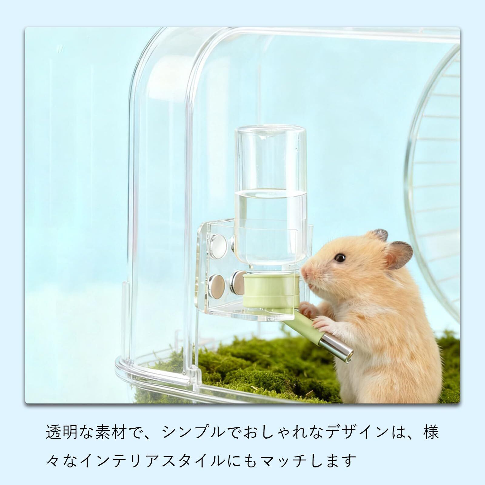 【高さ調節可能】ハムスターの成長段階(子ハムスター→成ハムスター)に応じて配置し、給水ボトルの高さを柔軟に調整し、ハムスターが楽に水を飲めるようにし、高さが適切でないことによる水が飲めないまたは頭を上げるのが難しい状況を回避します。