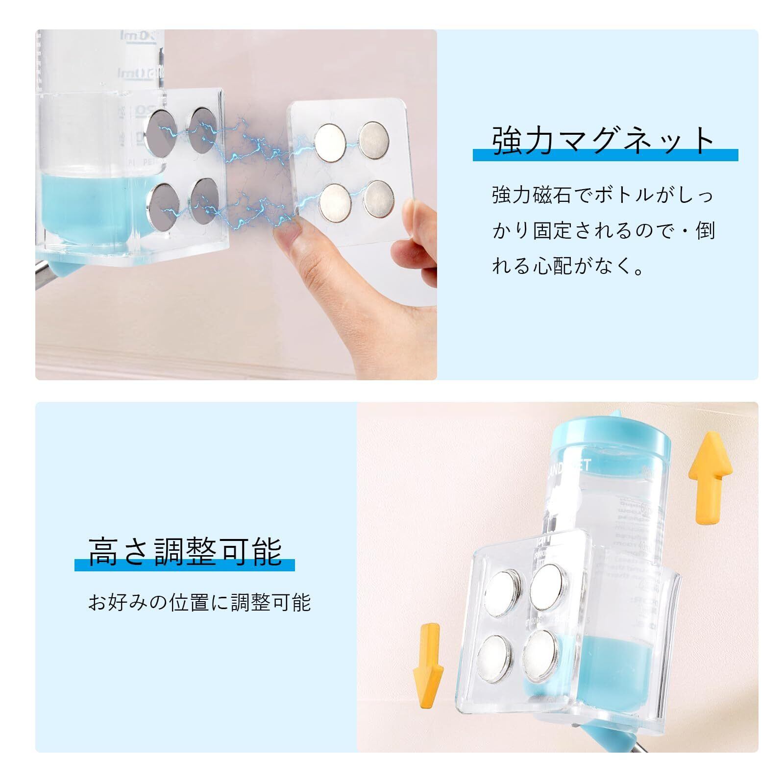 強力マグネット給水ボトルホルダー 小動物用水飲み器ホルダー 落下防止設計 磁気吸着 工具不要で簡単取付 高さ調整可能 金網&アクリルケージ対応 直径5cm以下給水ボトル対応 ハムスター・小動物用