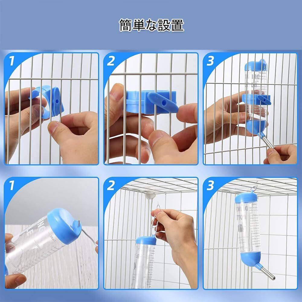 【簡単な設置】簡単な取り付け方法で数ステップで容易に設置でき、日常の清掃や交換も簡単です。ケージ内に固定するだけでなく、内部のスチールワイヤーを使用して簡単にケージ外に吊るすこともでき、ペットにより安全で便利な飲水選択肢を提供します。