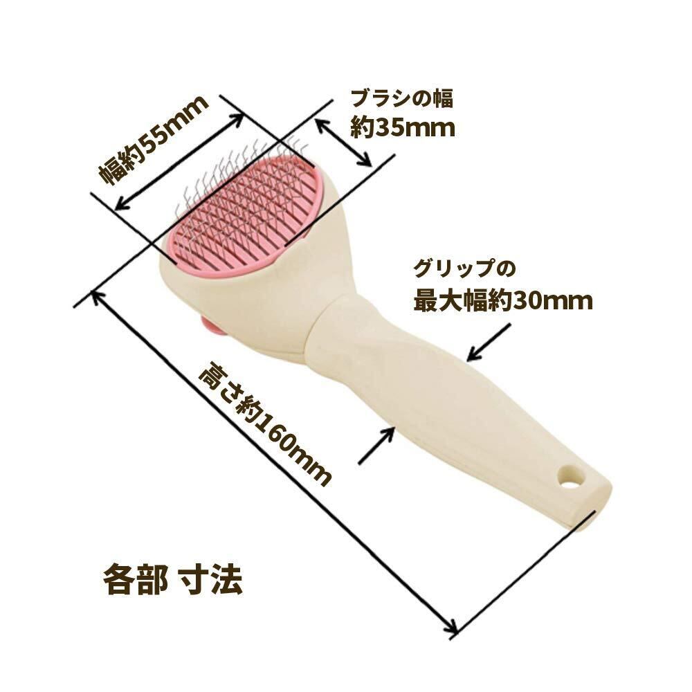 押すだけでブラシに溜まった抜け毛が簡単に取り除けるスリッカーブラシ。抜け毛の多い換毛期にオススメ。