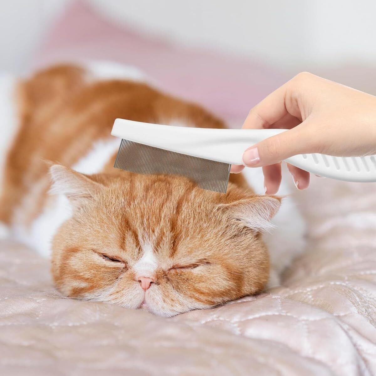 YFFSFDC ペット コーム ノミ取り櫛 犬猫 美容ブラシ 抜け毛取りクリーナー 毛取りコーム 静電防止 毛並みを整える クリーナーもつれ毛 トリマー マッサージ ステンレス製 (ホワイト2個)