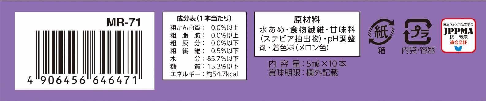 水あめ・食物繊維・甘味料(ステビア抽出物)・pH調整剤・着色料(メロン色)