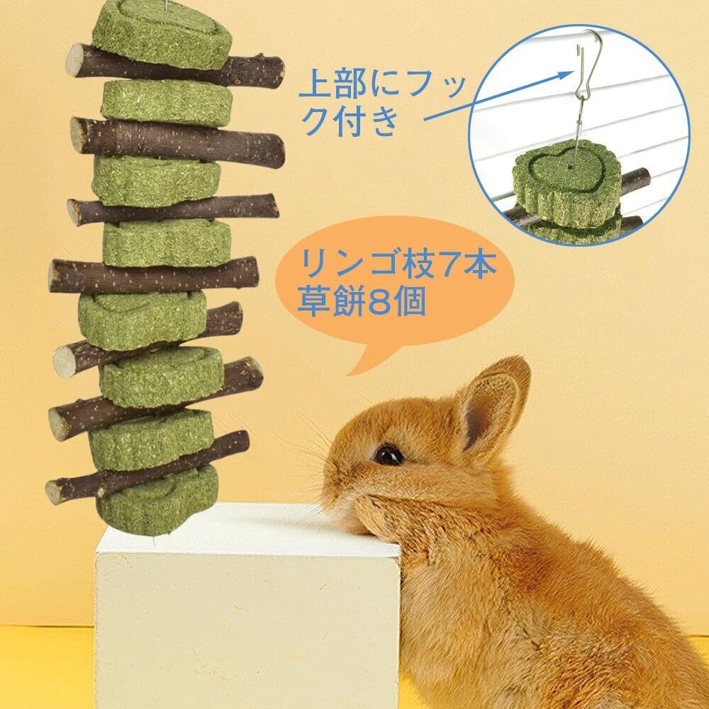 【特価商品】ハムスター 歯磨き 牧草塊とりんご枝 うさぎ チンチラ 嚙む あそび道具 おもちゃ ストレス 運動不足 解消 腸炎防止 吊り下げ 齧り対策 餌 おやつ リス ウサギ モルモット テンジクネズミ 小動物 (2個入)