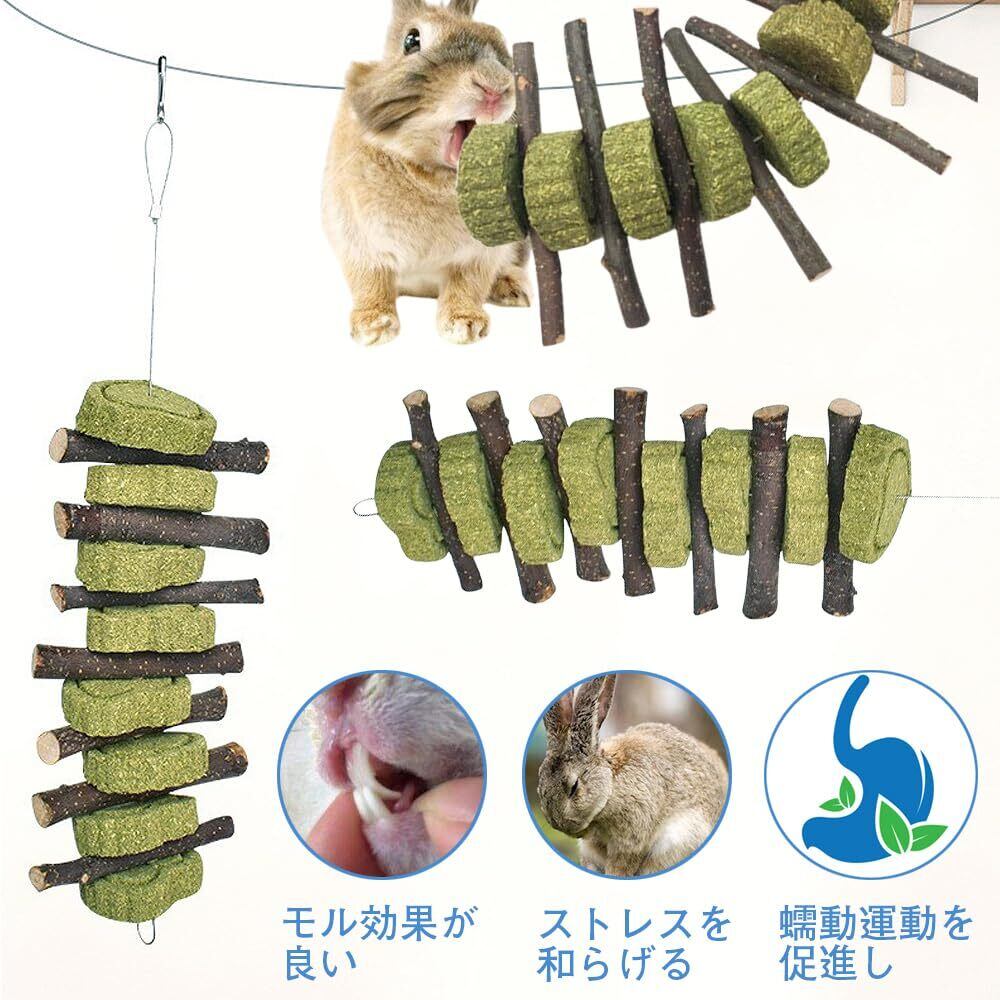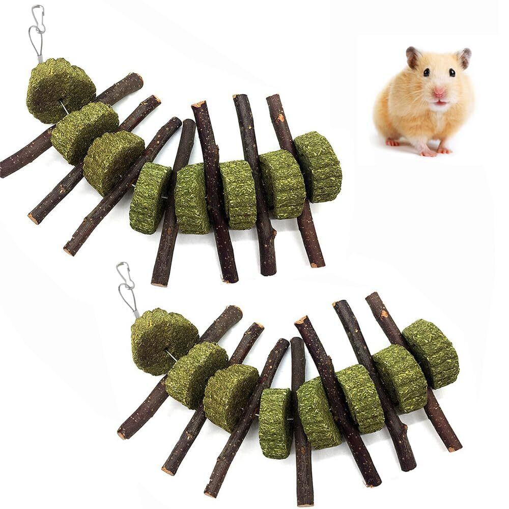 ハムスター 歯磨き 牧草塊とりんご枝 うさぎ チンチラ 嚙む あそび道具 おもちゃ ストレス 運動不足 解消 腸炎防止 吊り下げ 齧り対策 餌 おやつ リス ウサギ モルモット テンジクネズミ 小動物 (2個入)