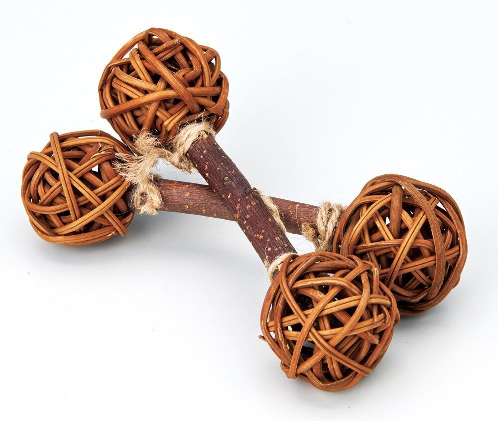 りんごの木の、枝の部分を使ってペットのかじりやすいダンベル形状にしました。皮をはがしたり、かじることにより、歯の伸び過ぎを予防したり、ストレス発散に役立ちます。※枝の部分がリンゴの木です。