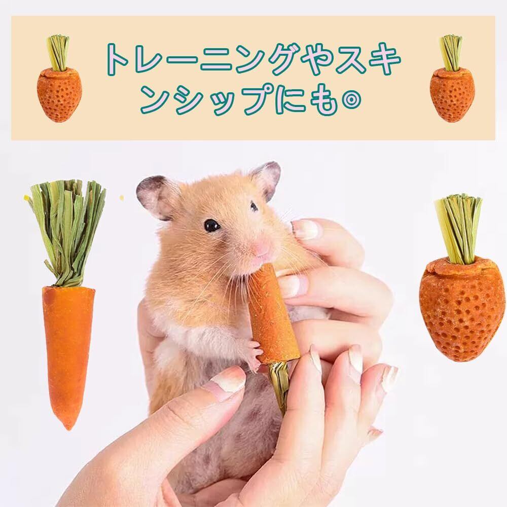 【ニンジン粉末・イチゴ粉末入りの香り豊かなおもちゃ】干し草、ニンジン粉、オートミール、イチゴ粉を使用し、自然な香りがペットの嗅覚を刺激して興味を引きます。