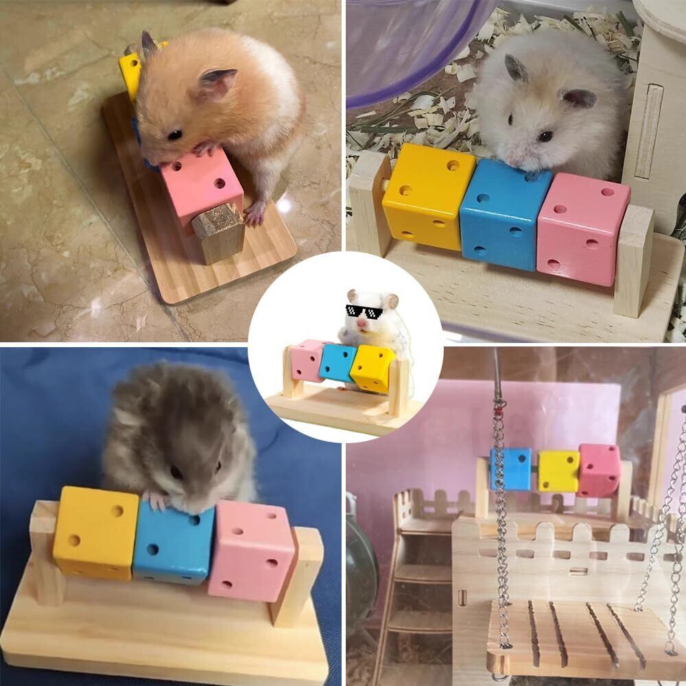 ハムスター 歯を研ぐおもちゃ 木製プラット ハムスター玩具 サイコロ型ハムスター噛みブロック カラフルな木製ブロック 小型げっ歯類 スナネズミ/モルモット/チンチラ/シマリス用 小動物用 (A)
