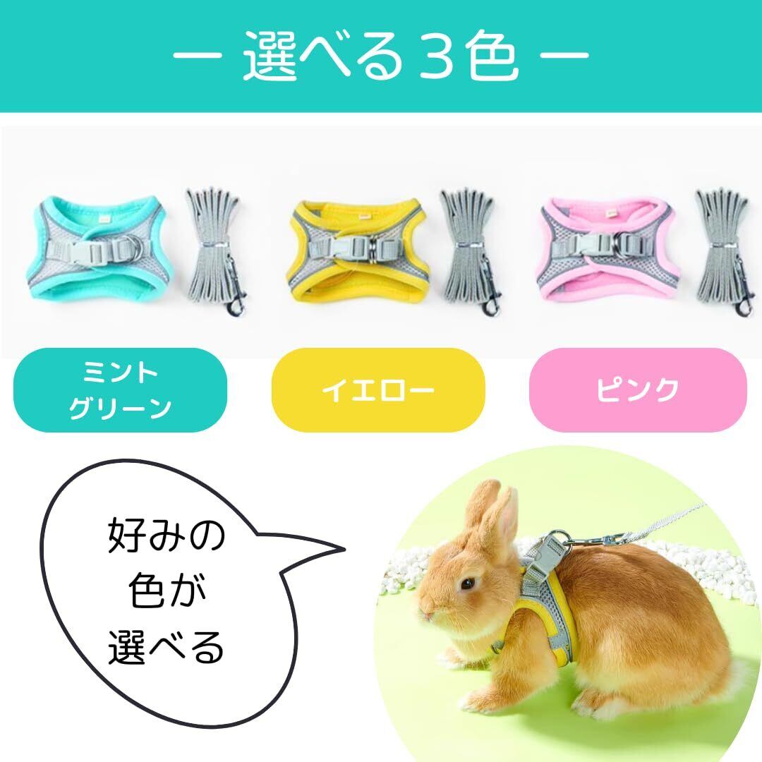 【数量限定】Uccellino うさぎ メッシュ ハーネス 冷涼 通気性 長さ調整可 リード 簡単装着 ウサギ用ハーネス (ミントグリーン, XXS)
