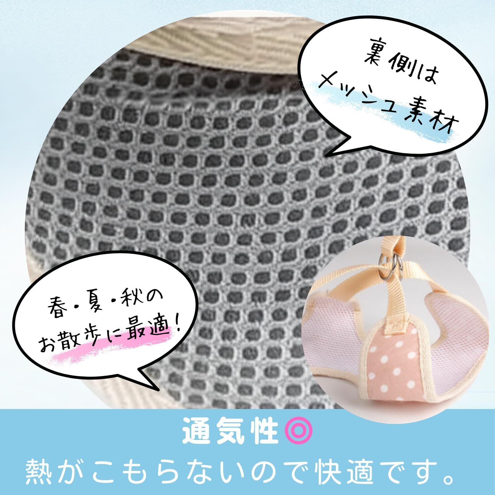 【メッシュ素材】メッシュ素材なので通気性が良く熱がこもりません。春・夏・秋のお散歩に最適です。