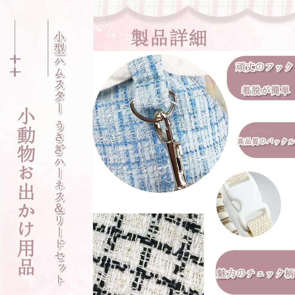 ハーネス 小動物用 牽引ロープ リード ウサギ 猫 ハーネスチンチラ散歩 調節可能 簡単着脱 牽引ロープ 柔らかい 通気性 野外活動 お散歩 お出かけ用運動不足解消 アウトドア トレーニング
